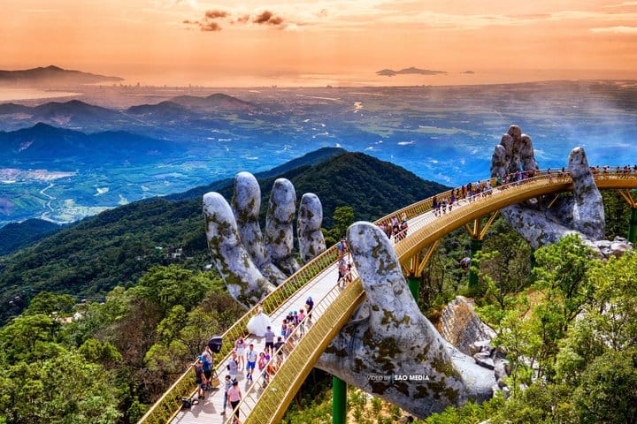 Begin your adventure with a convenient Hotel pickup, followed by a scenic cable car ride to the iconic Golden Bridge (Hand of God). Enjoy the Golden Bridge bathed in twilight and take a leisurely stroll around the summit. The illuminated cityscape of Ba Na Hills is like a European fantasy world!